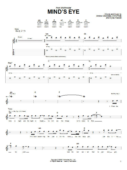 Wolfmother Mind's Eye sheet music, chords, lyrics - Printable PDF for Guitar Tab