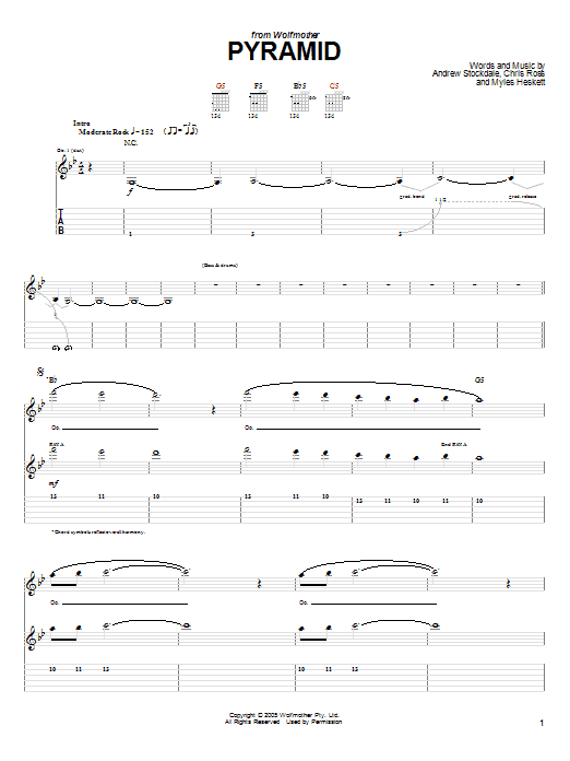 Wolfmother Pyramid sheet music, chords, lyrics - Printable PDF for Guitar Tab