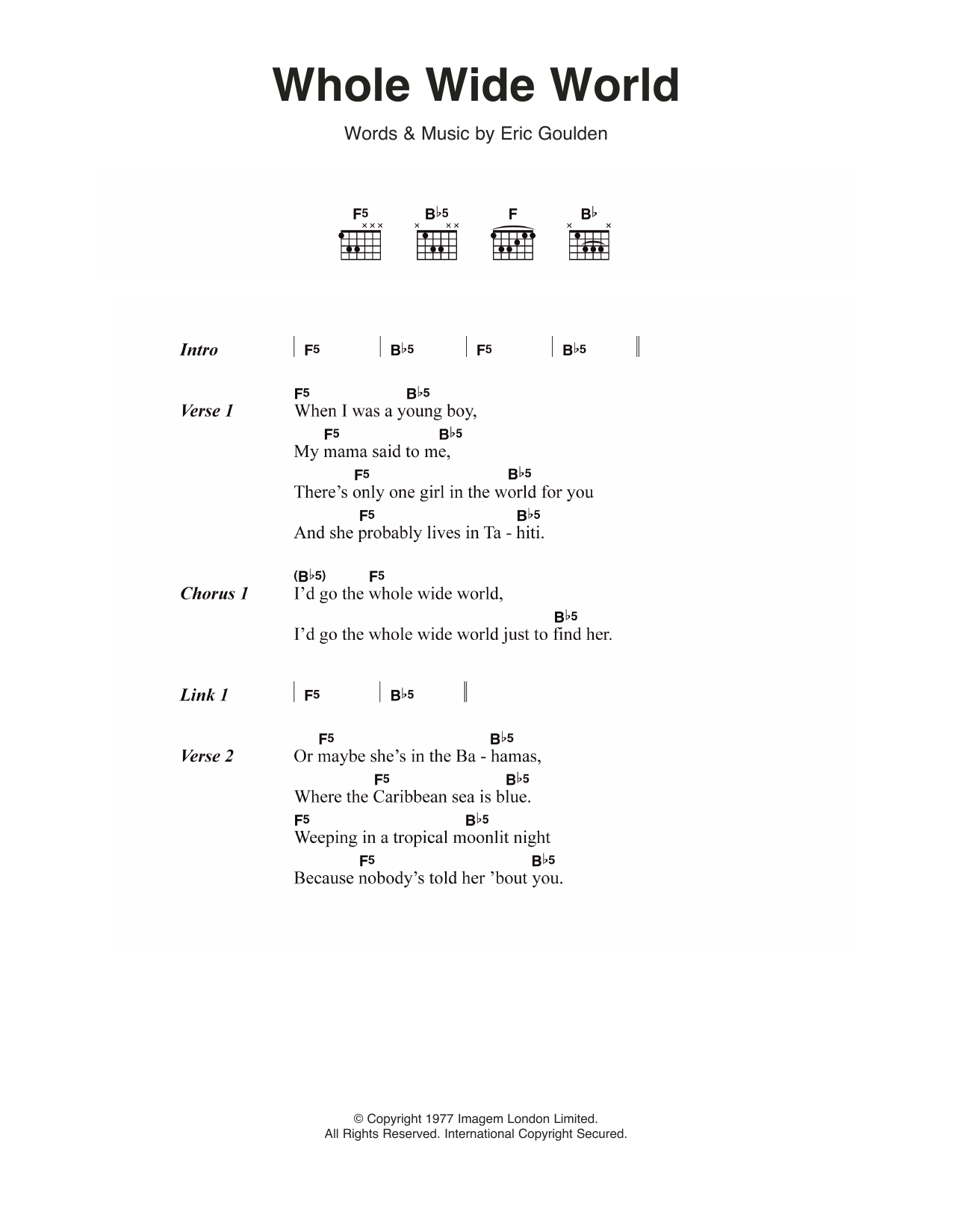 Wreckless Eric Whole Wide World sheet music, chords, lyrics - Printable PDF for Lyrics & Chords